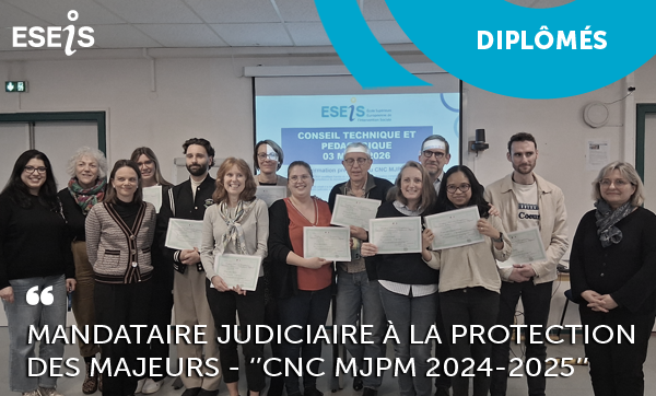 Cette formation vient de se transformer en Licence professionnelle MJPM portée désormais par la Faculté de Droit de Strasbourg. Une page se tourne donc mais un nouveau chapitre peut s’ouvrir : l’ESEIS reste un interlocuteur du secteur tutélaire et peut proposer des sessions de formation courtes et adaptées pour répondre aux besoins et attentes des professionnels du secteur.